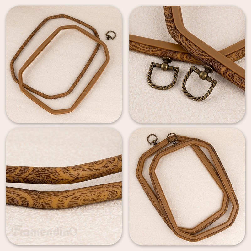 Framendino, 3 Pack Imitated Wood Embroidery Hoop Frame Cross Stitch Hoops Rectangle for Display Sewing Craft Hanging