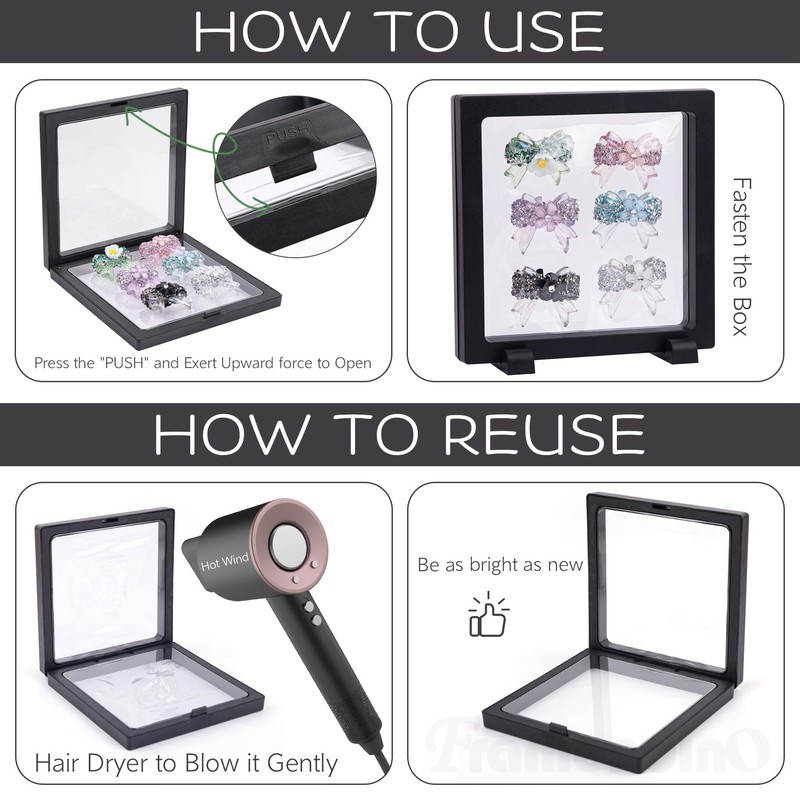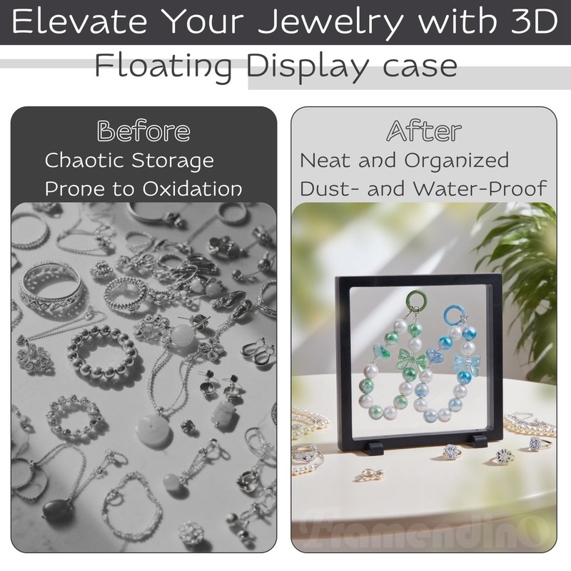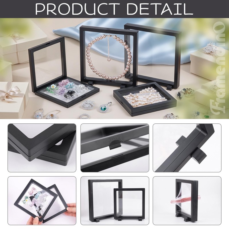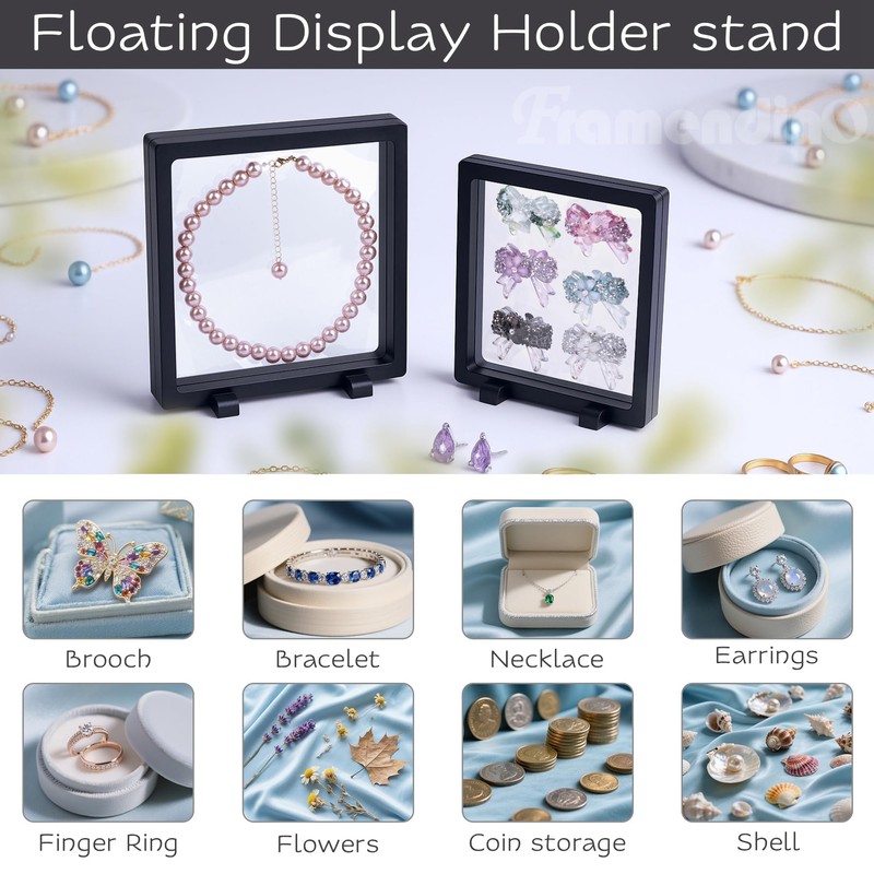 - Wide application: The 3d floating frame display case is perfect for displaying earrings, rings, necklaces, bracelets, jewelry, pins, medals, coins, dried flowers, stamps, badges, specimens, poker chips and other keepsakes
