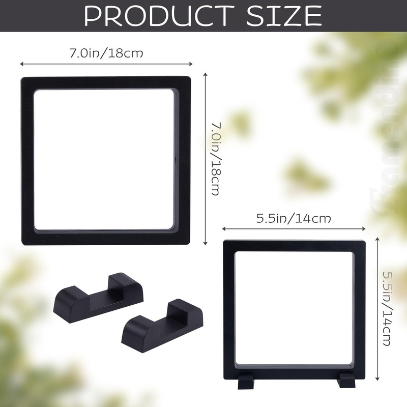 - Product size: The 3d floating frame display holder is about 5.5 x 5.5 x 0.8 inch, 7 x 7 x 0.8 inch