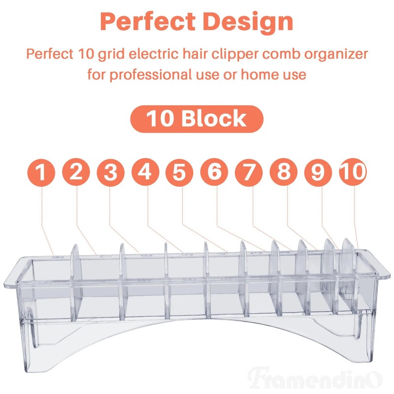Framendino Professional Clipper Guard Holder with 10 Grid Case for Universal Hair Clippers