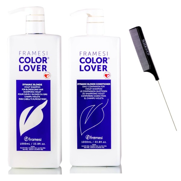 FRAMESI Dynamic Blonde Violet Shampoo & Conditioner 33.8 oz +Free Comb