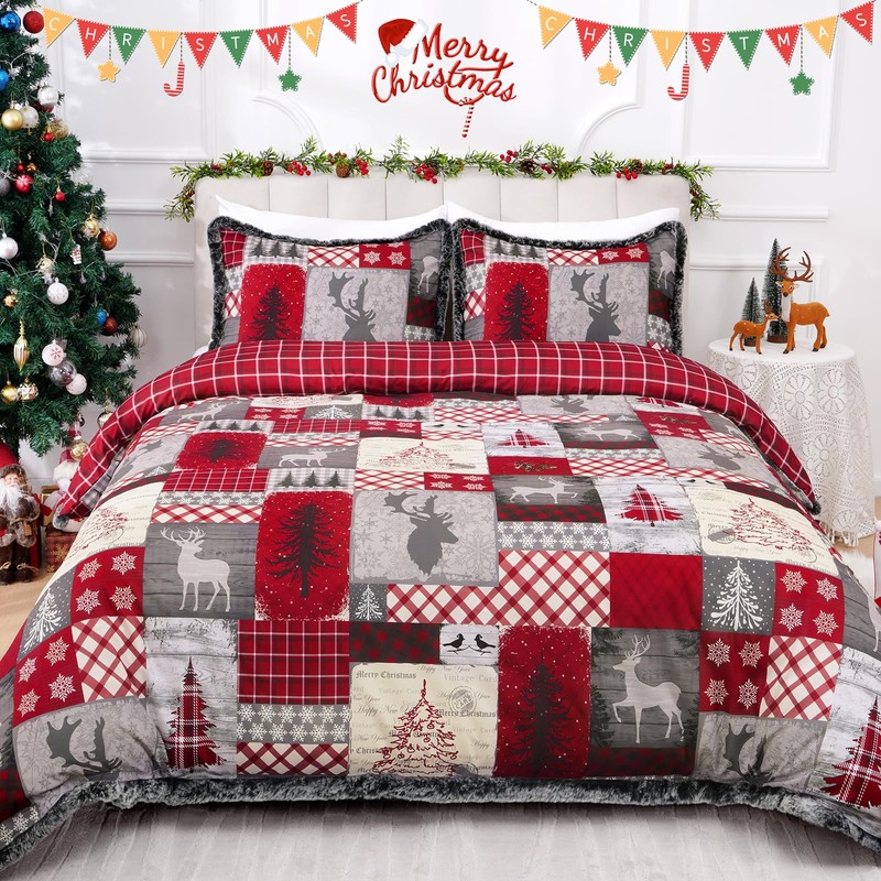 - Christmas Decorations: Our Christmas duvet cover set is reversible design (A side: Christmas tree and reindeer pattern. B side: Red buffalo plaid), giving you the choice to switch up your bedroom decor in an instant, bringing a festive atmosphere to your home