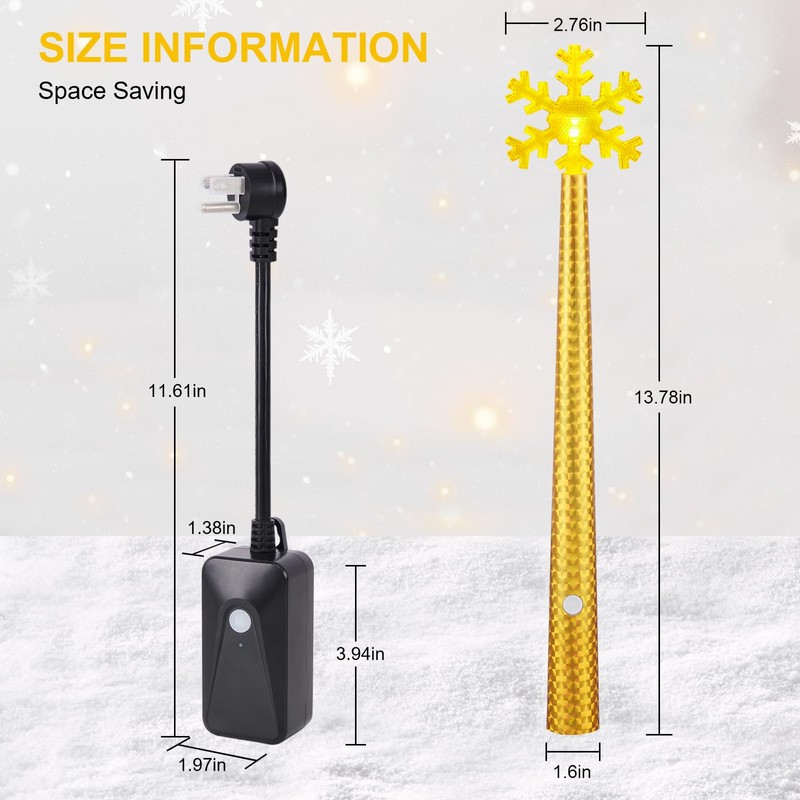 FRAMICS Wireless Remote Control Outlet, Magic Wand Christmas Tree Light, Christmas Tree Remote Control with Music, Remote Light Switch for Christmas Tree Wand Snowflake, for Kids, Gold