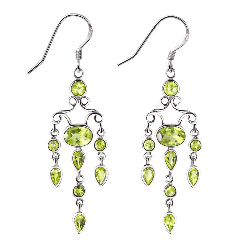 Franki Baker Green Peridot Gemstone & 925 Sterling Silver Chandelier Earrings