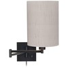 Franklin Iron Works Modern Swing Arm Wall Lamp with Cord Espresso Bronze Plug-in Light Fixture Dimmable Ivory Linen Cylinder Shade for Bedroom Bedside House Reading Living Room Home Hallway Dining