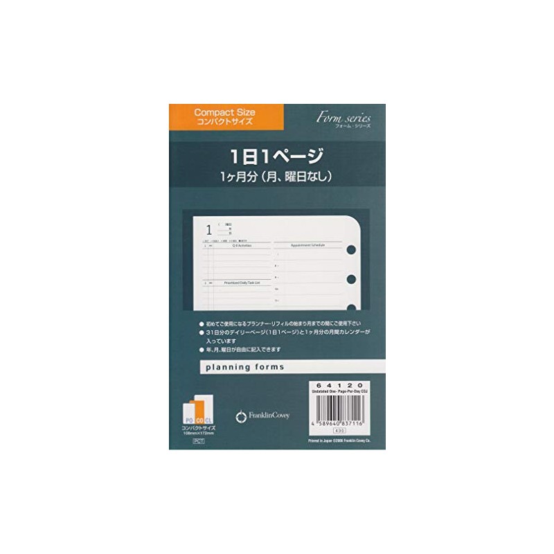 Franklin Planner Original 64120 1 Page Per Day Daily Page 1 Month No Week 64120 Compact Size