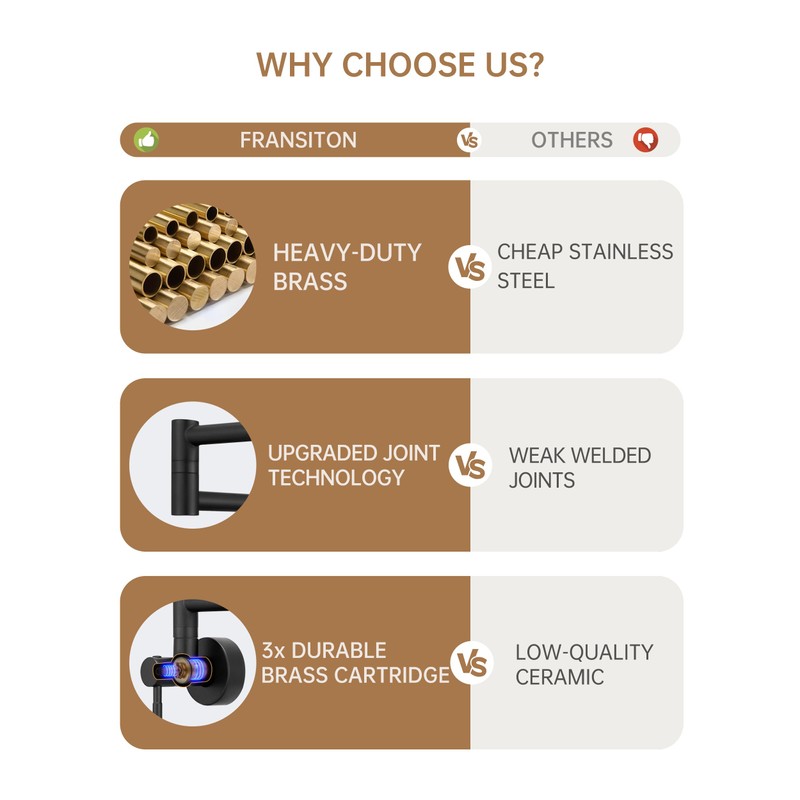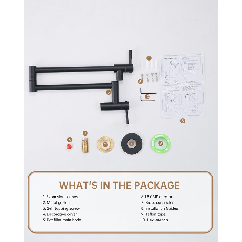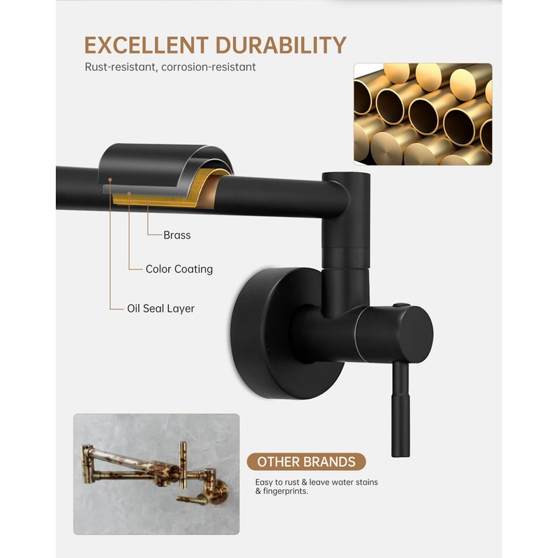 - ☆【Premium Pot Filler Faucet】The core material of our kitchen pot filler is made of brass,which can be used for a long time. Matte black finishes are more in line with modern simplicity and are easy to clean.