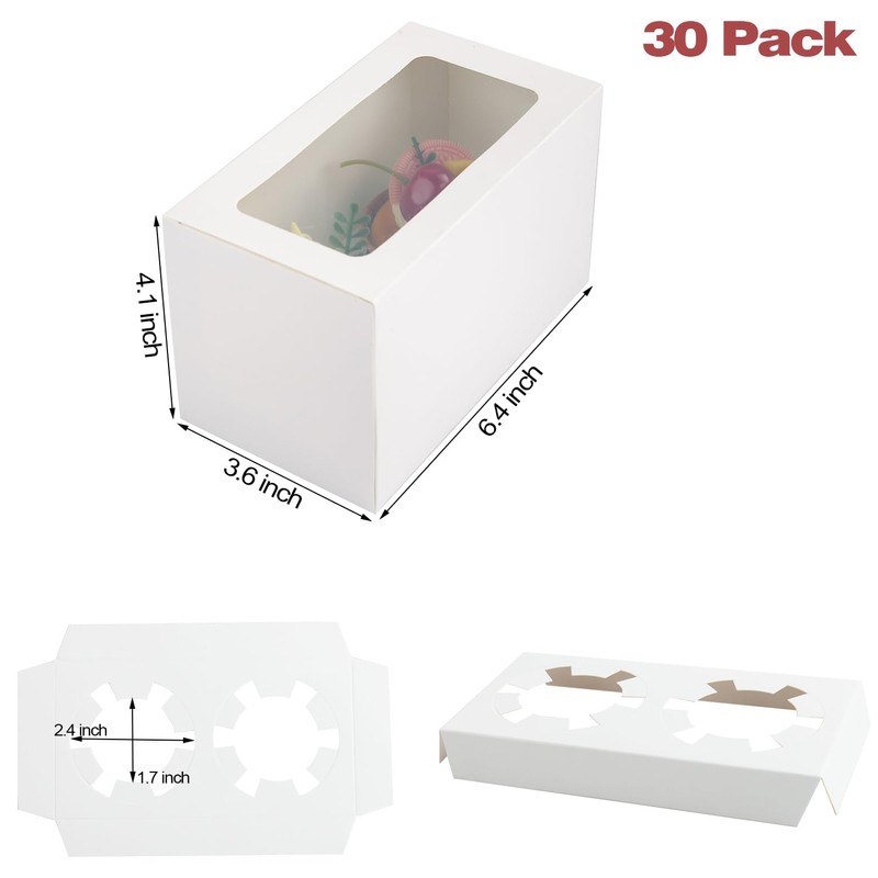 Frantis Frantis 30 PCS 6.4x3.6x4.1 inch Paper Cupcake Boxes with Inserts & Window Hold 2 Sweet Treats, Bakery Boxes For Cupcakes Carrier, Cupcake Containers (Red-2 Holes)