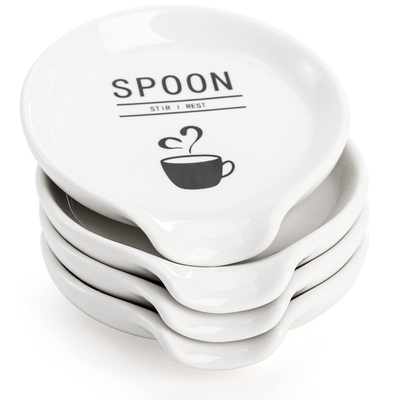 Frcctre 4 Pack Ceramic Spoon Rest for Stove Top, 3.5 Inches Spoon Holder for Dining Countertop, Farmhouse Coffee Spoon Rest Cooking Utensil Rest Tablespoons Rest Coffee Stir Spoon Rest