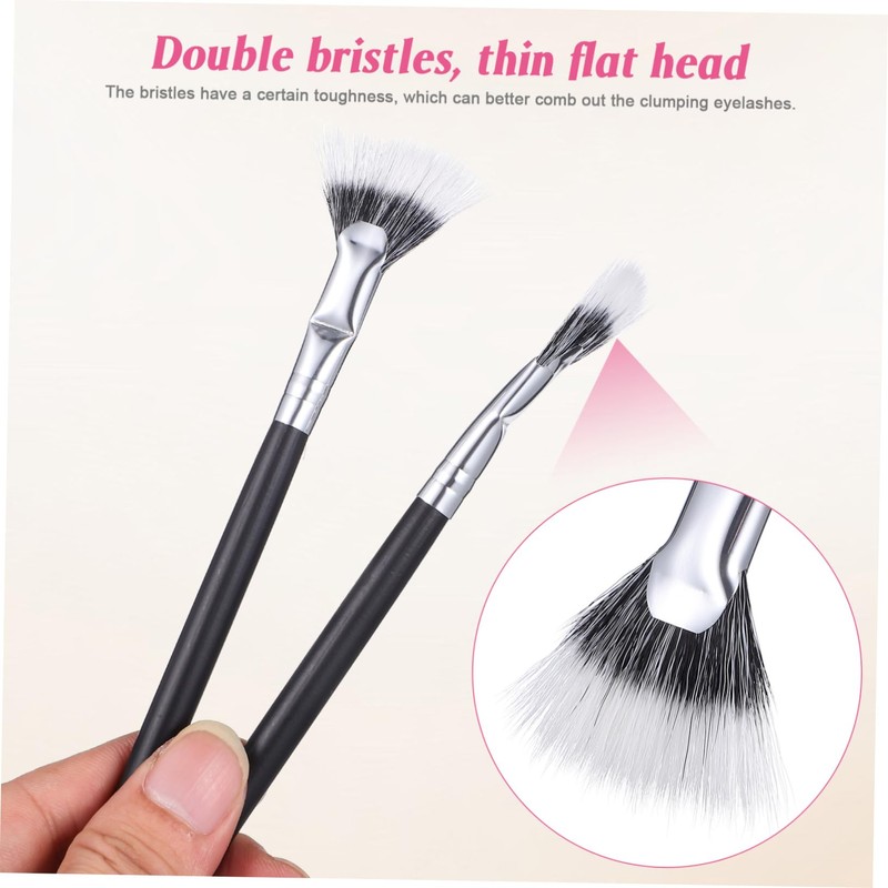 eyelash brush applicator The brush head's subtle angle works harmoniously to comb through lashes, eliminating clumps, giving you a stunning look every time you apply mascara and care for your falsies.eyebrow brush Achieve professional-grade lash makeup with our Fan Brushes, boasting extended wooden handles and sturdy synthetic bristles