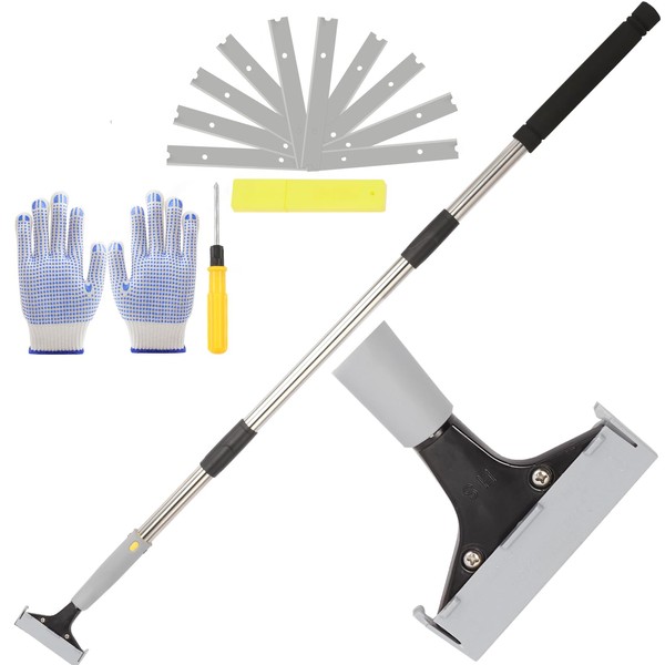 Frebuta Floor Scraper Long Handle Heavy Duty, 4 inch Razor Blade Floor Scrapers Metal Paint Scraper with 10PCS Extra Metal Blades Paint Scraper Ideal for Cleaning Stove Top Windows Glass Wall