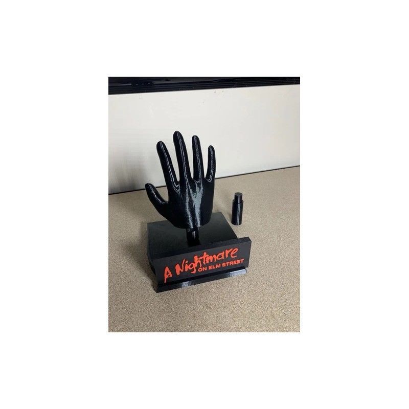 Bring a piece of horror history into your collection with the Freddy Krueger Glove Display Stand, inspired by the iconic A Nightmare on Elm Street series. This reproduction stand showcases a detailed replica of the infamous glove, crafted to resemble the prop famously used in the movies. Perfect for enthusiasts of the film industry, this item is a must-have for those who admire the chilling aesthetics of horror movie memorabilia.