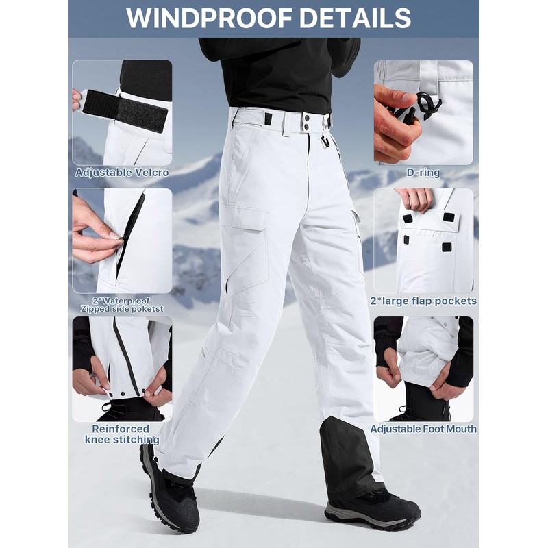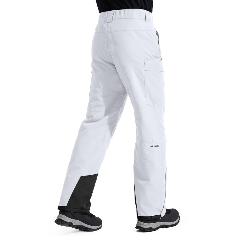 FREE SOLDIER Men's Waterproof Snow Insulated Pants Winter Skiing Snowboarding Pants with Zipper Pockets (White Large(38-40)/30L)