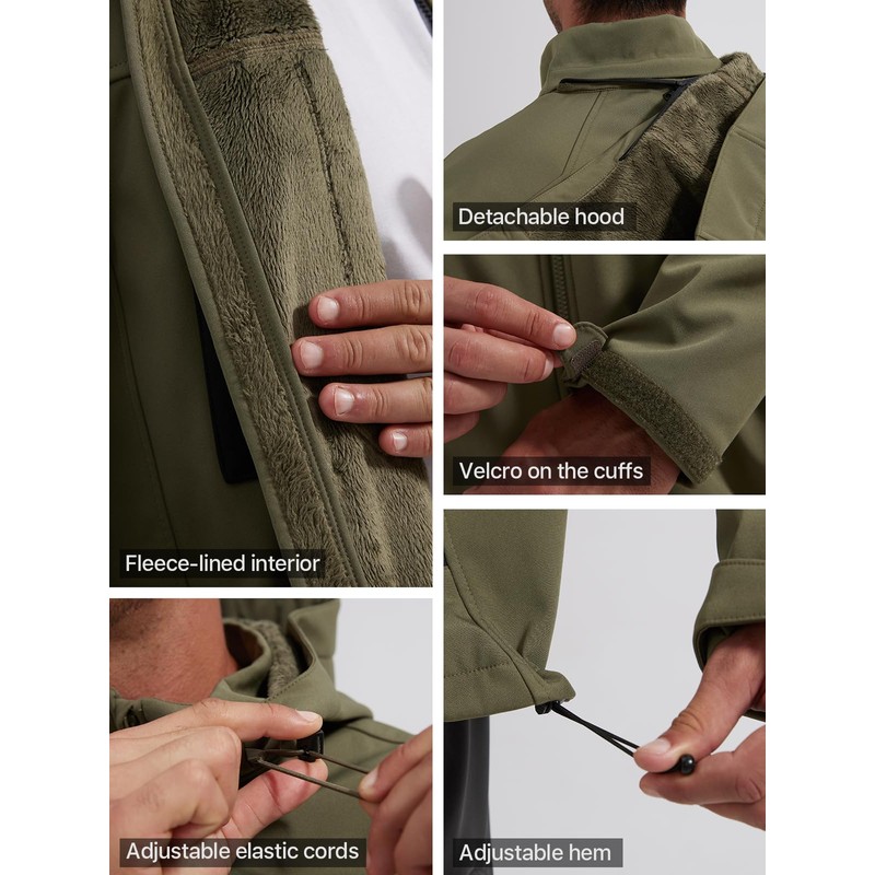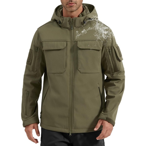 FREE SOLDIER Men's Waterproof Softshell Jacket Thick Fleece Lined Outdoor Jacket Tactical Military Hoodie Windbreaker