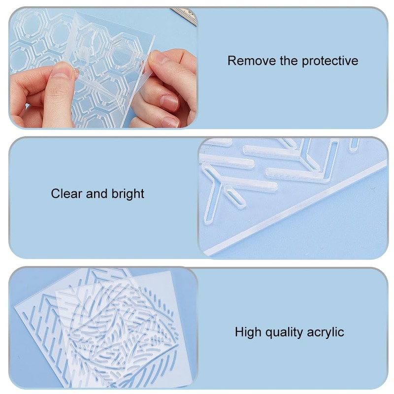 FREEBLOSS 4 Set Sashiko Coasters Plants Lines DIY Sashiko Kit with Instructions Sashiko Stencil Sashiko Kit for Beginners Acrylic Sashiko Template with Embroidery Cloth for Housewarming Gift