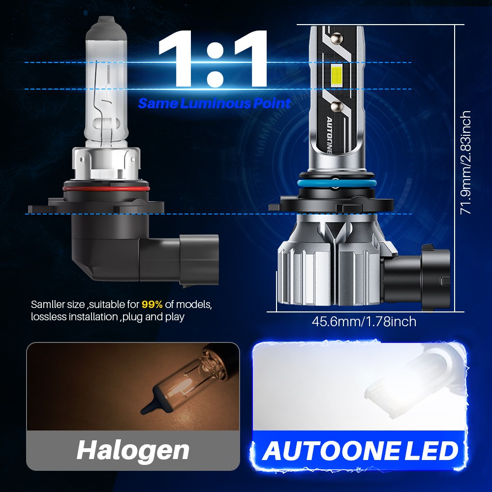 The 9006/HB4 LED Bulb is designed to match the luminous point of your car's original halogen bulbs, making it an ideal replacement. Its compact design and no bulky base make it easy and quick to install.