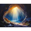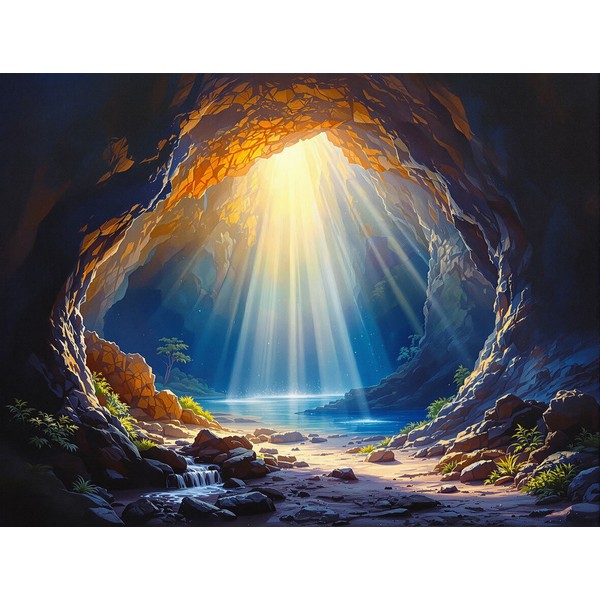 Freedom Quest Shop Sunlit View of a Hidden Beach Cove and Waterfall from a Cave Poster Print