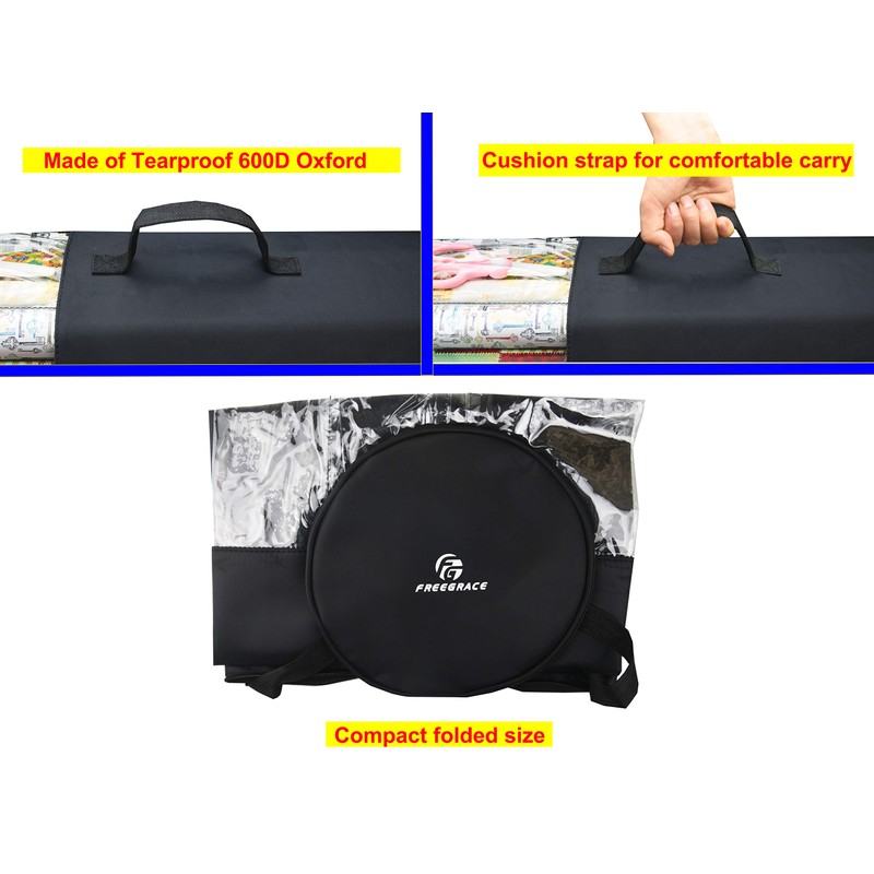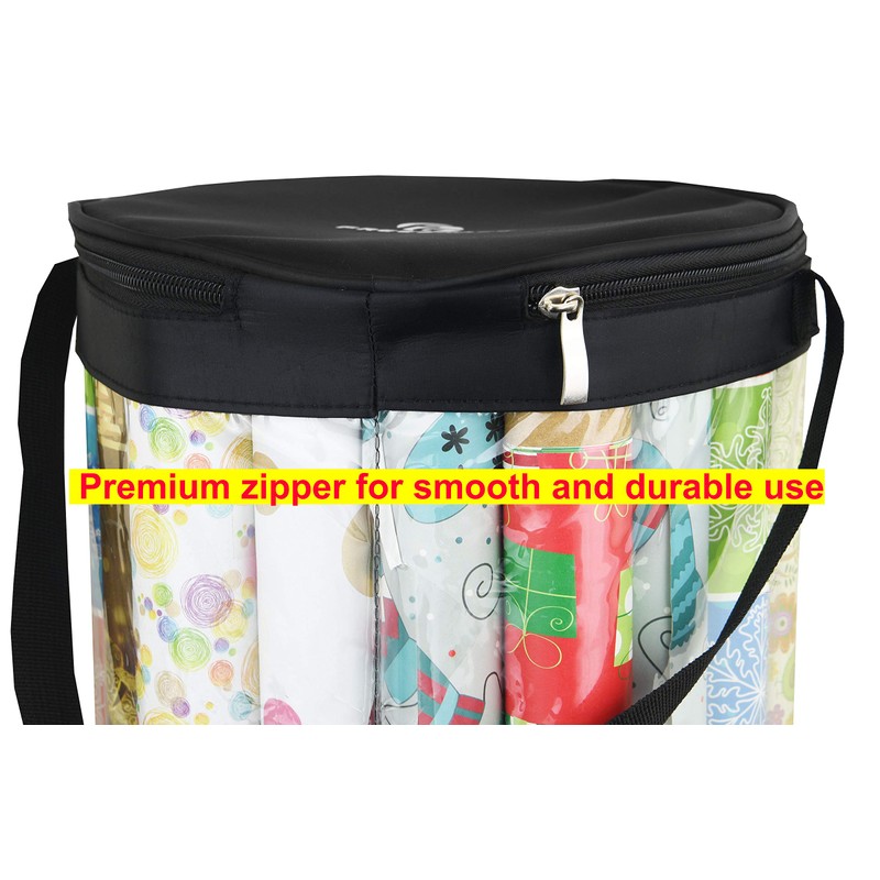- UNLIKE ALL THOSE CHEAPLY-MADE WRAPPING PAPER ORGANIZERS that cannot hold multiple paper rolls, tear easily or have a nasty chemical smell, the Freegrace gift bag organizer is made from tearproof nylon material with a reinforced handle for maximum durability. In addition, we have re-designed the zippers in order to make them sturdier and the odorless PVC part is thicker than almost all competitors in order to ensure that your gift wrapping accessories are safe!