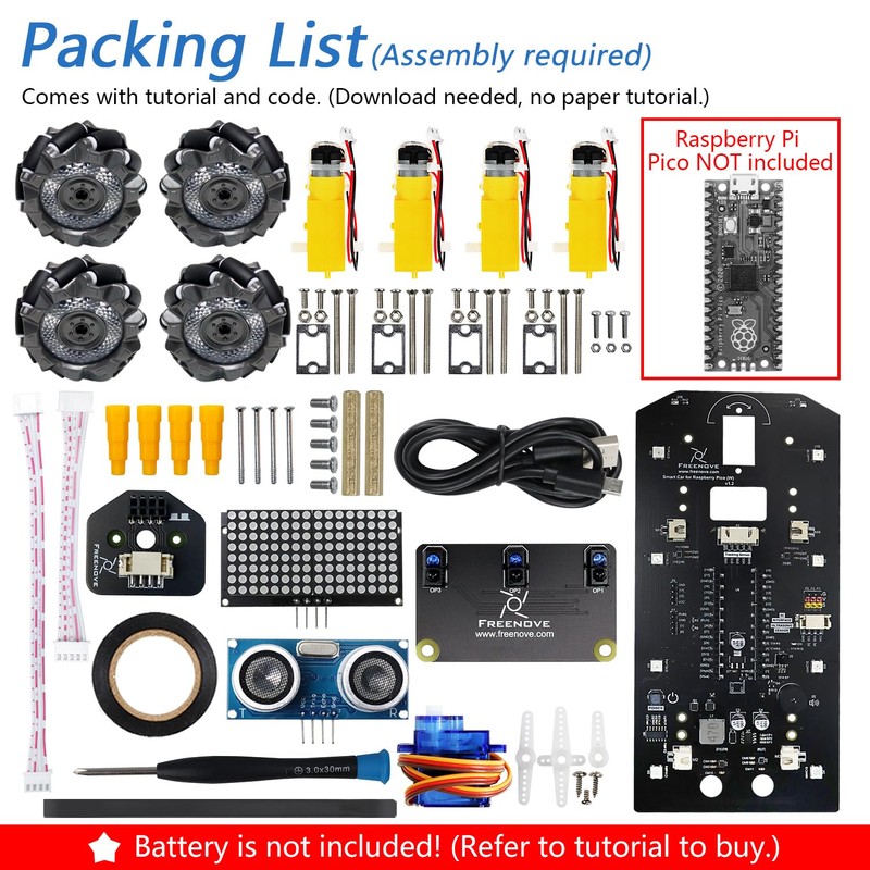 - This car with Mecanum wheels based on Raspberry Pi Pico can move in various incredible ways. (Assembly required. Raspberry Pi Pico and Battery are NOT included.)