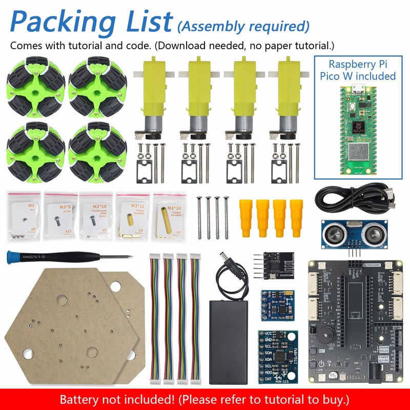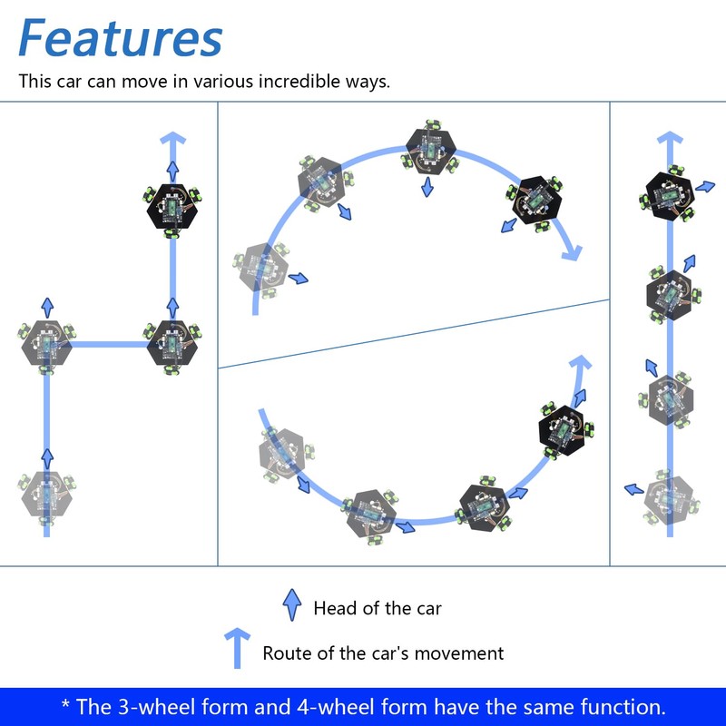 - Omni Wheels: This car can move in various incredible ways, and is equipped with multiple sensors and modules (Assembly required) (Battery NOT included)