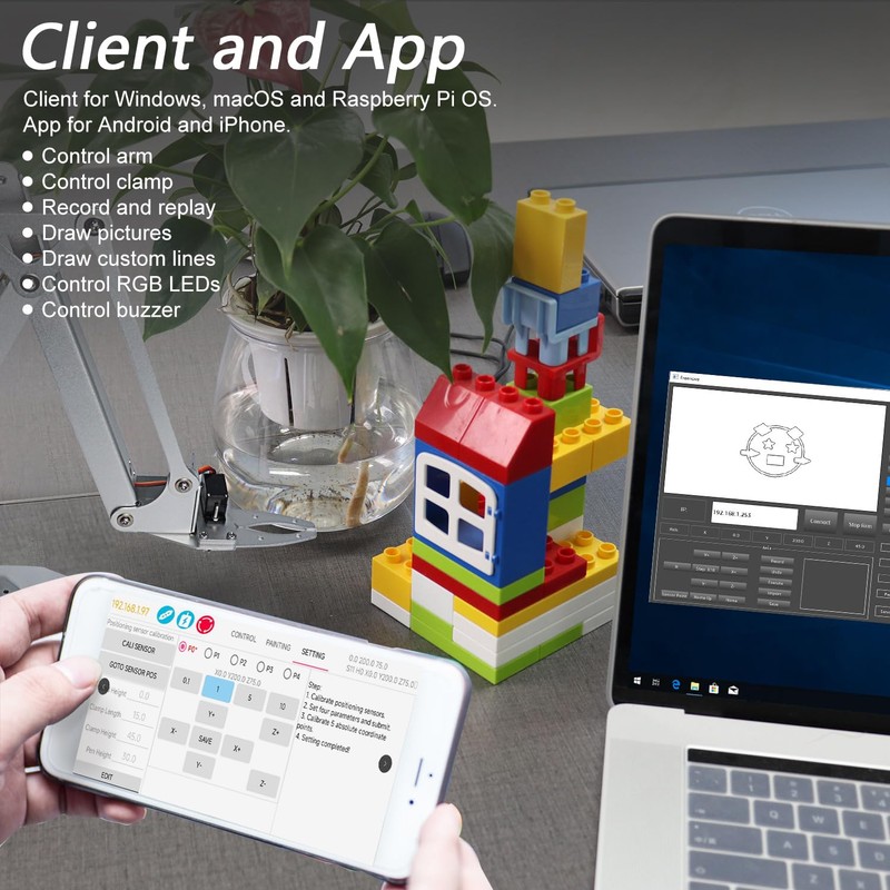 - Two Working Modes: Clamping mode (with replay function) and Drawing mode (in pictures or custom lines) (Assembly required) (Raspberry Pi and Battery NOT included)
