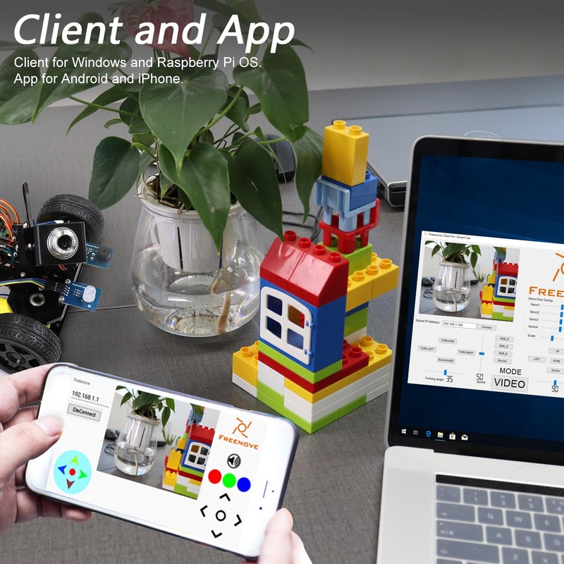 - Control Methods: Controlled wirelessly by your Android phone or tablet, iPhone and computer (run Windows or Raspberry Pi OS)