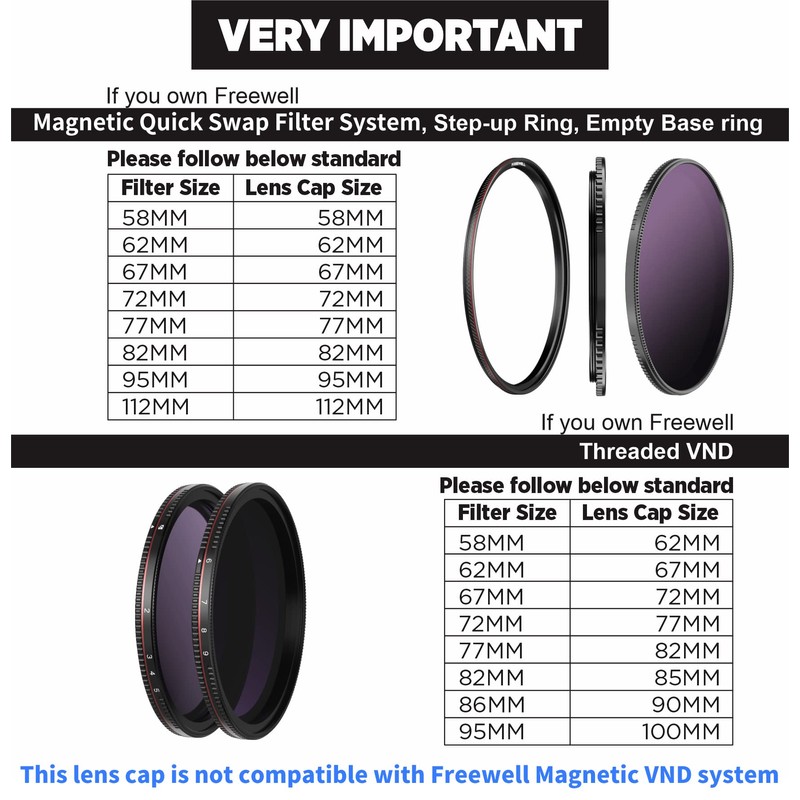 - Der obere Objektivdeckel ist basierend auf der Größe des freihändigen Magnetfiltersystems hergestellt. Bitte beachten Sie folgendes: