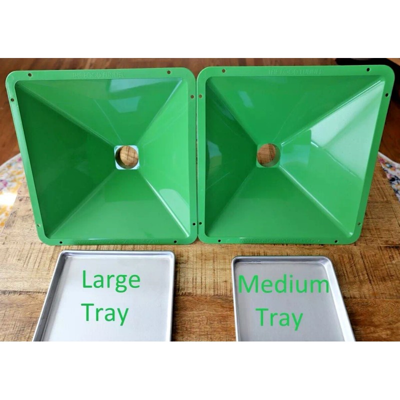 The opening of the funnel is 13"x13" allowing plenty of room for food to funnel into a container with no spills.