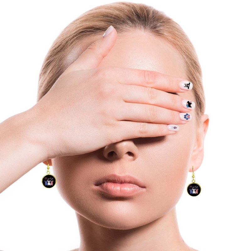 Earring sets include 1 set of 2 earrings in a gold or silver tone; perfect for showing off your favorites. Choice of drop dangle earrings or stud earrings can be worn with any outfit, dressy or casual. Drop dangle earrings measure 1.4 inches long and setting measures 0.5 inches in diameter. Stud earring setting measures 0.5 inches in diameter. Both made with glass cabochons to intensify color and shine!