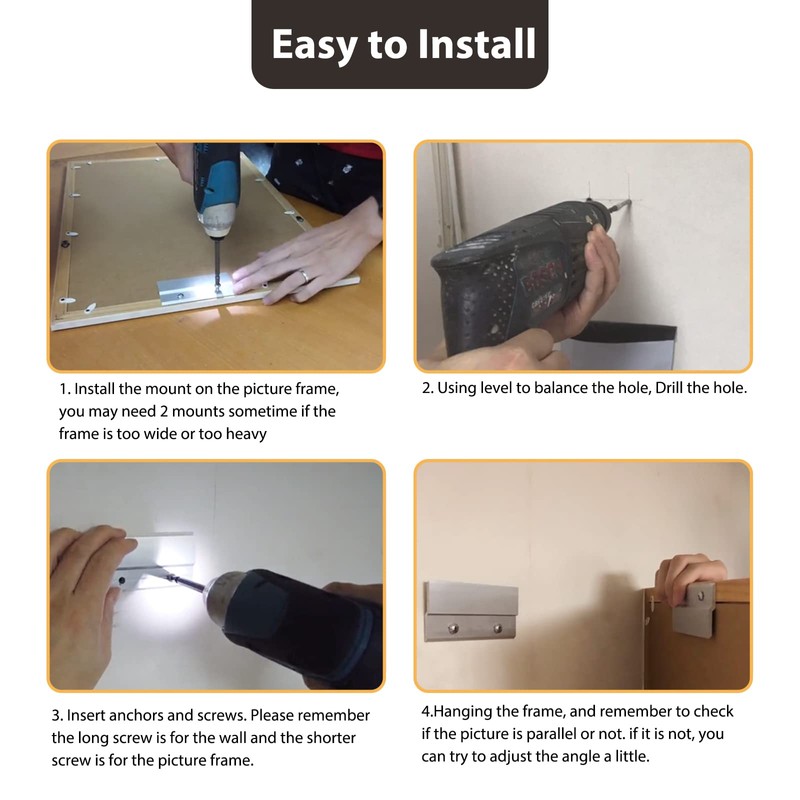 - 【Heavy Duty & Invisible Z Hanger】: This z hanger have 2 mounts to ensure your artwork on the wall more steady ( Up to 50 pounds ). And the hardware remains are concealed completely. Make your favorite decoration more beautiful, no blemish