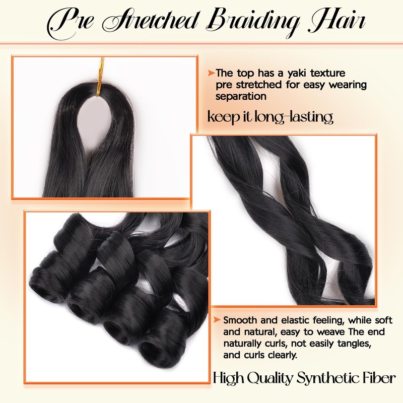 - 3.Time - Saving & Effortless Styling:Pre Stretched braiding hair designed for convenience, quick and easy installation. you can achieve a stunning look without the need for complicated styling tools. French curl braiding hair can meet your styling design needs for any occasion.