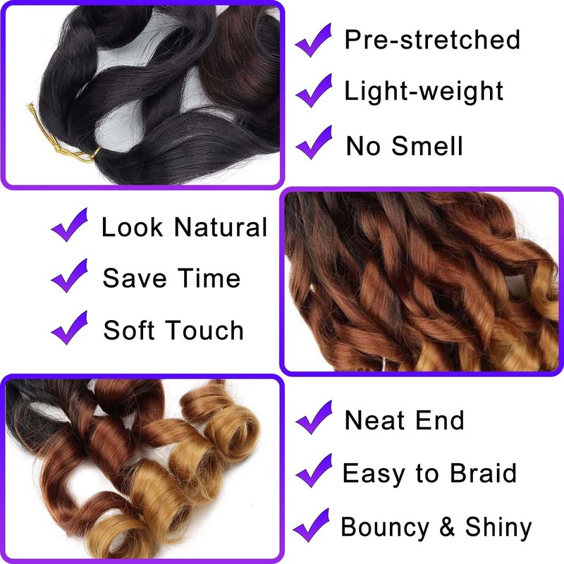 - Material for French curl braiding hair: Our French curly braiding hair is made of high-quality, temperature-resistant synthetic fibres. This French braiding hair is very soft, supple and natural, just like your real hair.