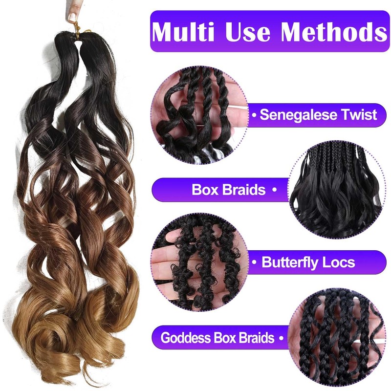 - French hair for variable hairstyles: Our pre-stretched French curly braiding hair is different from ordinary French curls. The loose wavy spiral curls give you more room for creative hairstyles. It can not only be used directly for straight hair, but also perfectly adapted for all kinds of hairstyles you like: box braids crochet hair, boho box braids, goddess box braids, senegalese twist crochet hair, butterfly locs crochet hair, jumbo box braid crochet hair, goddess locs crochet hair, nu locs and more.