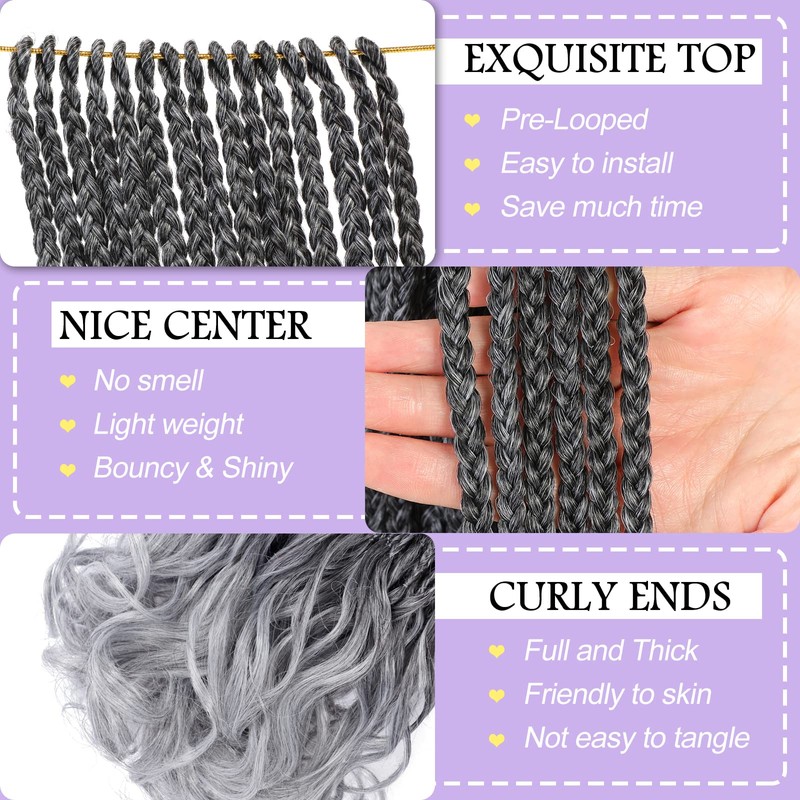 1.Product: Pre-twisted & pre looped French curly braiding hair, french curl crochet braids, prebraided goddess box braids crochet hair for black women and kids, Bohemian crochet braids with curly ends, crochet box braids, curly crochet hair pre looped.