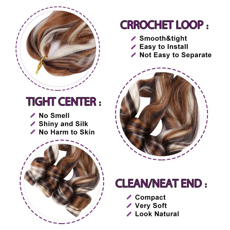 • 【Advantages】Loose Wavy Spiral Curl Braids Hair Extension is very soft, smooth and natural, it will be the most beautiful curly hair you have ever seen, the hair is not easy to fall out, easy to separate, save time when braiding, not easy to tangle when using, no Odorless, it can also be reused, its quality will exceed your expectations, a beauty investment you won't regret, this French Curls is suitable for any season and any crowd!