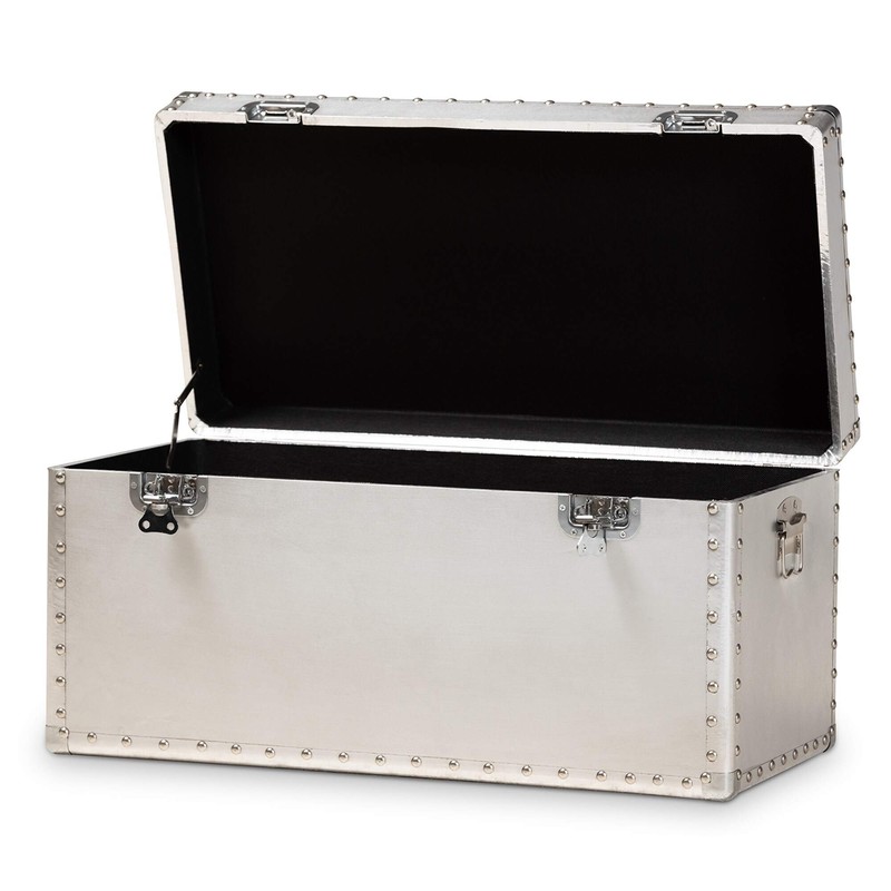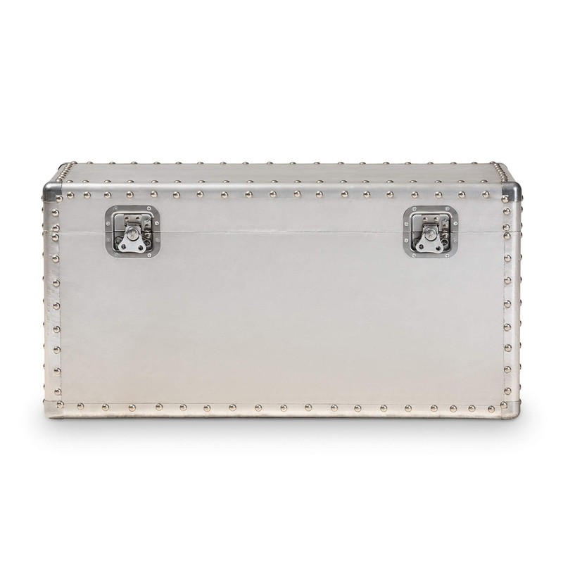 - French Industrial Silver Metal Storage Trunk Aluminum