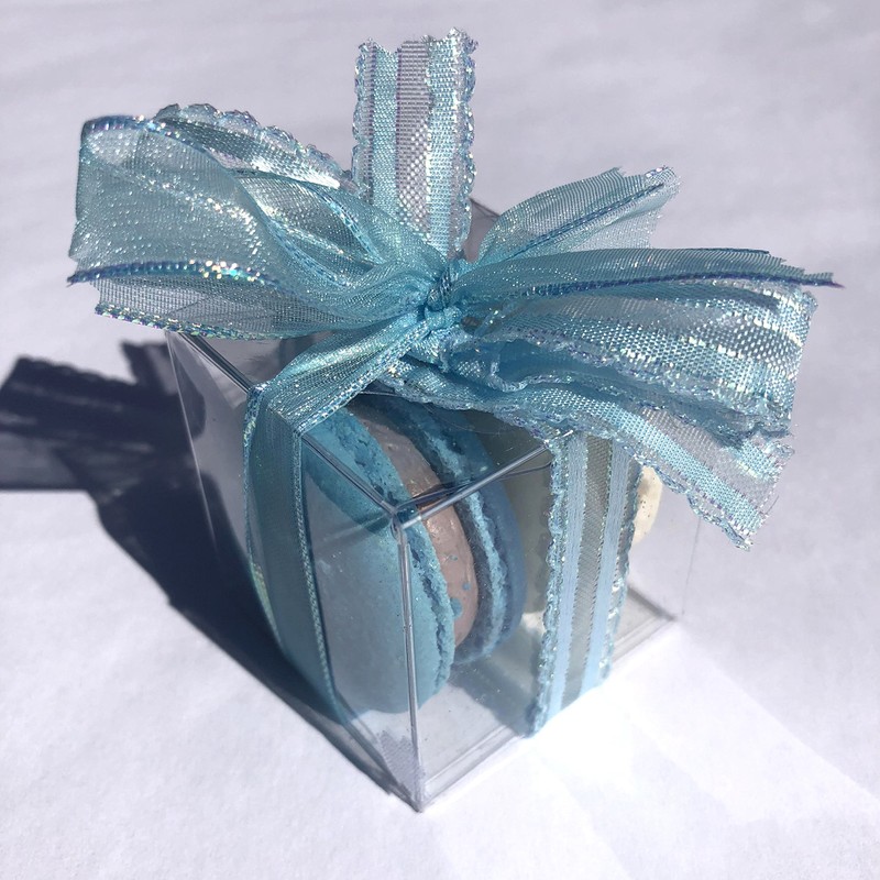 Designed for any great occasion, this box holds 10 Party Favors of our Blue & White Authentic French Macarons