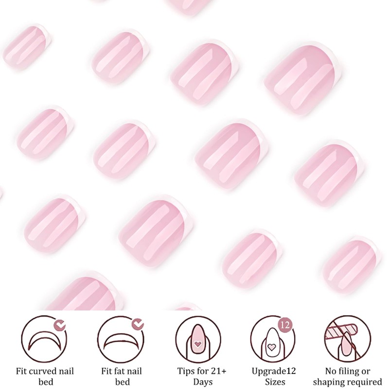 - 【UPGRADE DESIGN,ELEVATE YOUR STYLE】Each pre-designed short square french false nails has a nude pink base color and is paired with stylish and classic white french tip design, giving you a beautiful french nails in 10 minutes