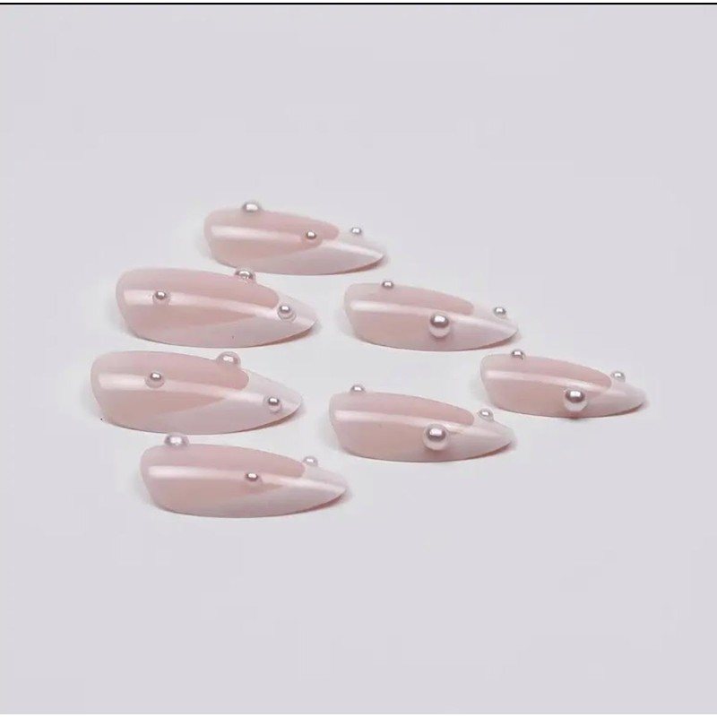 French Tip Almond shaped Medium length Press On Nails, finished with luminous pearls for a soft feminine touch. These nails offer a confortable fit and are crafted with durable material that ensures long lasting wear. Whether you`re heading to an event or just want a touch of beauty in your everyday look, these press on provide a flawless manicure in minutes. Each set includes 24 nails in multiple sizes to ensure the perfect fit, plus everything you need for easy application.