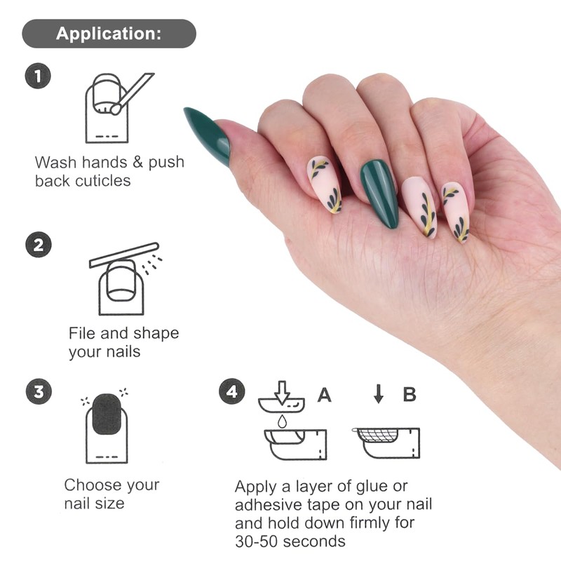 - What's Included: 12 nail sizes ensure a totally custom fit, plus we provide you with stronger glue to wear your false nails. These acrylic glue on nails applied to the nails are designed according to the curvature of women's nails, fit naturally, the effect is more natural