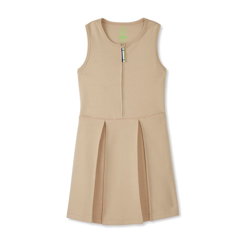 French Toast Girls' Adaptive Zip Front Stretch Ponte Jumper, Khaki, 7-8