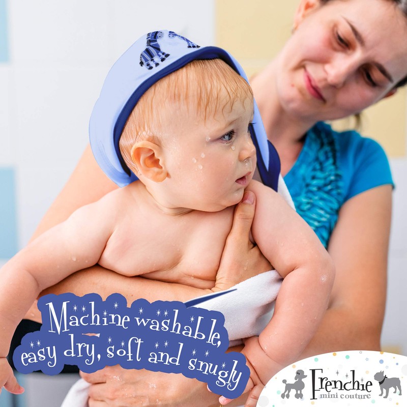 Bath time is made more fun and cozy with these adorable hooded towels from Frenchie Mini Couture. Made from 80% Cotton and 20% Polyester, these hoods feature a cute bear embroidery design.