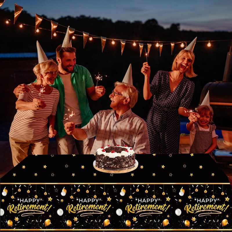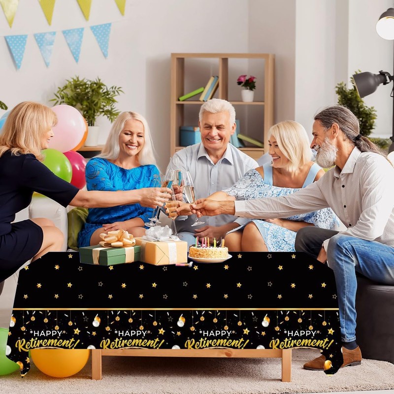 - [PERFECT SIZE]--Retirement birthday plastic table cover measures 72X41 inch, rectangular.