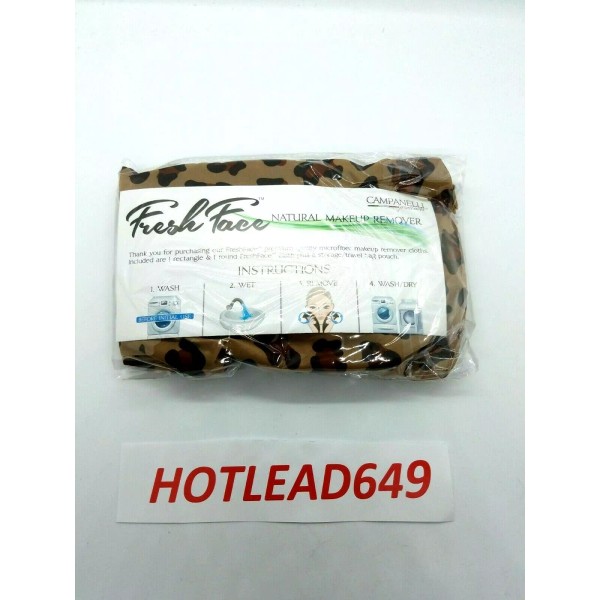 Premium quality microfiber makeup remover cloths included are 1 rectangle & 1 round FreshFace cloth plus a storage/ travel bag pouch. * Cheetah themed print * 100 % Polyester cription The FreshFace Makeup Remover Towels from Campanelli remove your makeup with water only--perfect for those who want to remove makeup without the use of soap. Not only are the FreshFace Makeup Remover Towels soft, they're pretty, too!These soft, plush microfiber cloths help remove eyeliner, mascara, HD makeup, and much more. Plus, they're reusable and machine-washable so you can treat yourself to a spa-like experience at home every day--while saving money, too.How do I use it: Wash your FreshFace towels prior to use. When using, wet the towel with warm water and wring it out until it's slightly damp. Then, simply rub off your makeup in a circular motion.Campanelli Fresh Face Natural Makeup Removers Towels - Cheetah - New!. Condition is New. The FreshFace Makeup Remover Towels from Campanelli remove your makeup with water only--perfect for those who want to remove makeup without the use of soap. Not only are the FreshFace Makeup Remover Towels soft, they're pretty, too!