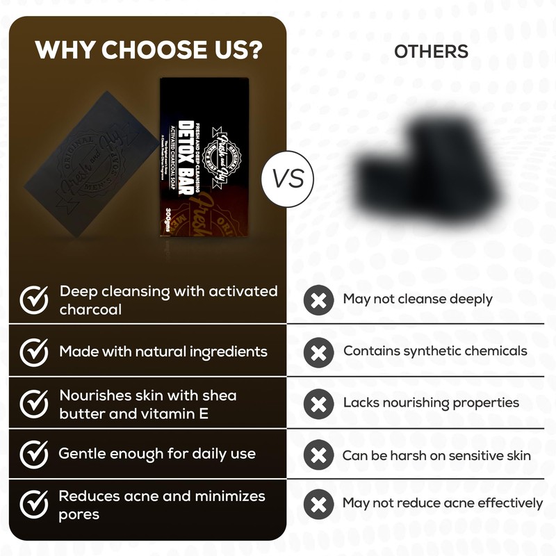 - β ππππ πππππππππ ππππππππ: Our Fresh and Fly 300gm Detox Activated Charcoal Soap effectively draws out impurities, toxins, and excess oil from the skin, providing a deep cleanse for a revitalized skin.