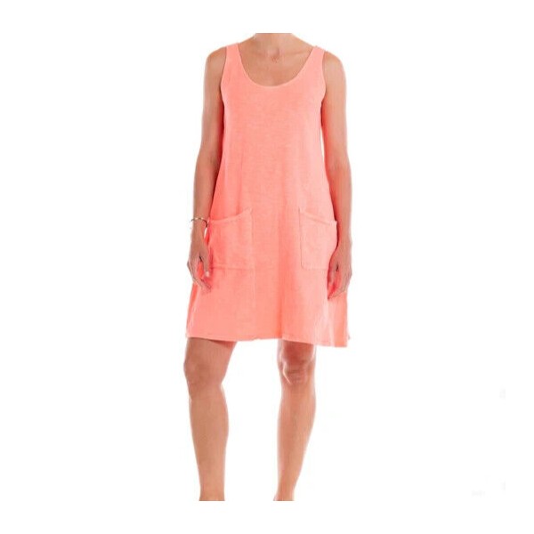 FRESH PRODUCE Small Sunset Coral Pinstripe DRAPE Cotton Jersey Dress $75 NWT S