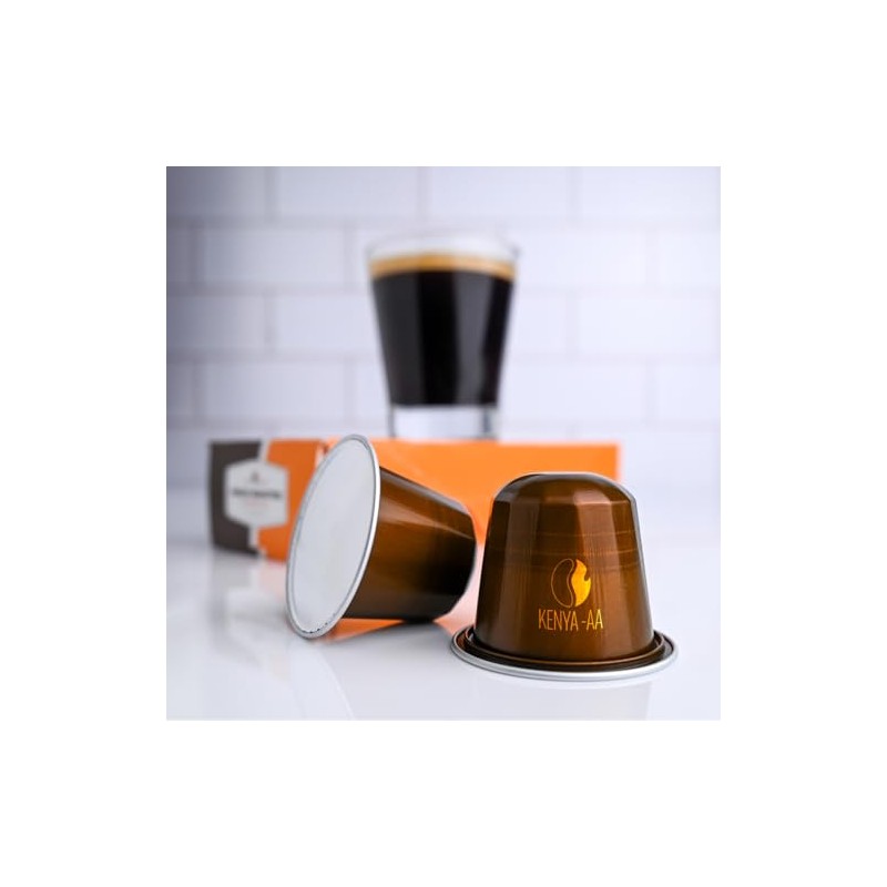 Fresh Roasted Coffee Espresso Pods for Nespresso OriginalLine, Kenya AA, 10 Aluminum Capsules