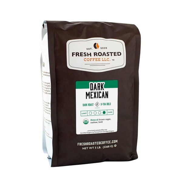 Fresh Roasted Coffee, Organic Dark Mexican, 5 lb (80 oz), Dark Roast, Kosher, Ground