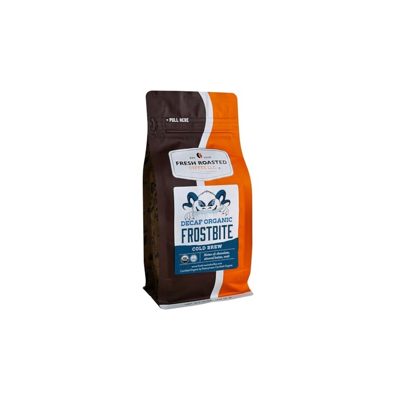 - Decaf Organic Frostbite has dark chocolate undertones as well as nutty, malty flavors, and something special that we can't put our finger on. Deliciously decaffeinated using a chemical-free water decaffeination process so you can enjoy it any time.
