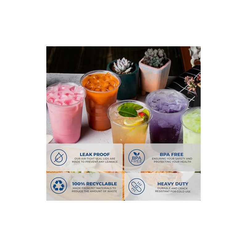 - Versatile Uses - These disposable clear cups provide exceptional clarity to the beverage inside so these plastic coffee cups will make your milkshakes, fruit shakes, iced latte, frappe, sodas, juices, flavored water, bubble tea, and other cold drinks more tantalizing to the eyes.